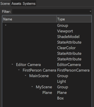 - Instance your saved scene into a containing scene using the PrefabricatedScene utility class either in the editor or programmatically. NB. You can optionally partially load a branch of the nested scene’s graph through its scene root property. This can be useful if your nested scene contains additional geometry and assets to assist in the editing of the scene but are not needed when nesting into a containing scene.